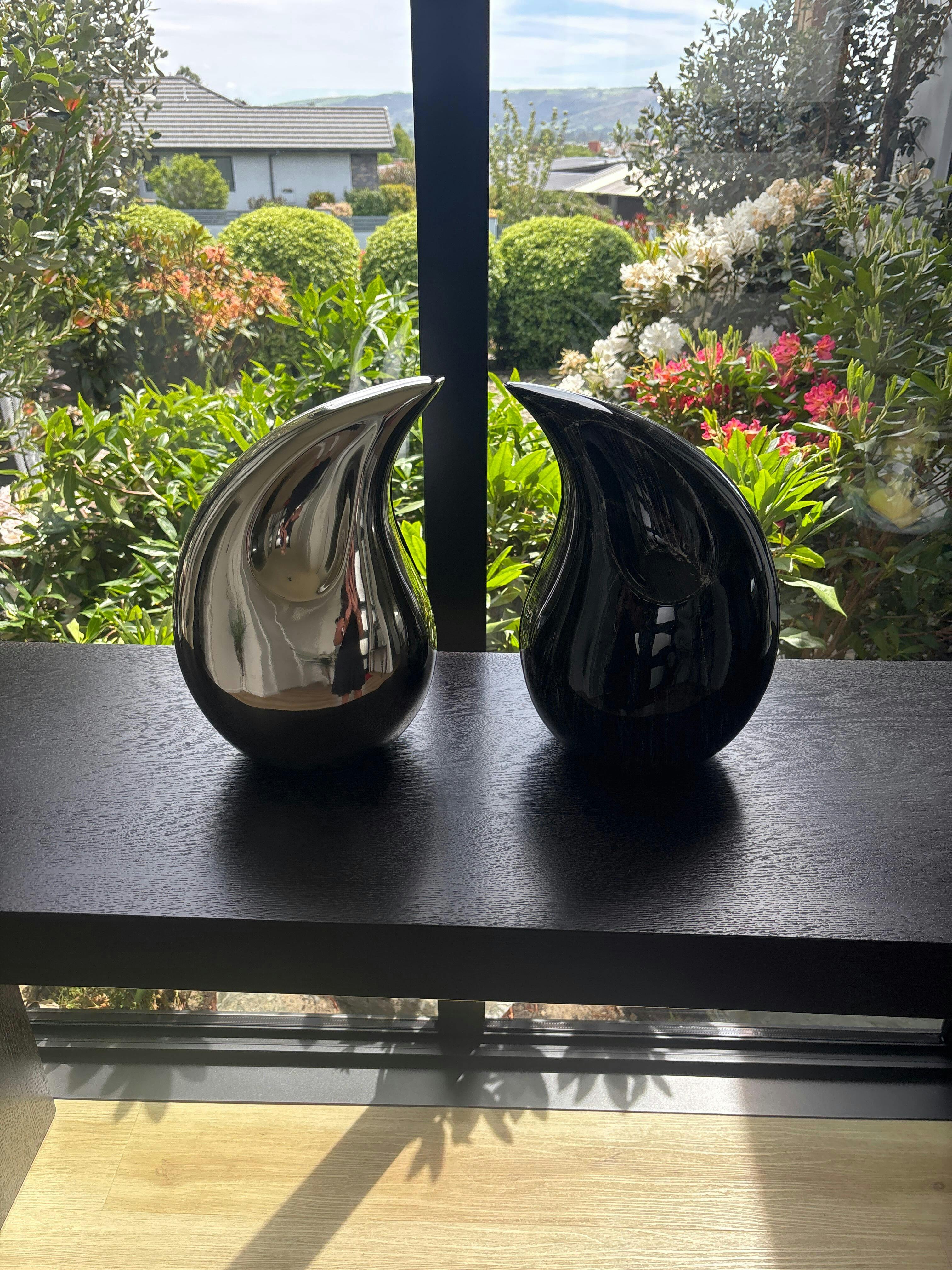 Crafted with a stunning black marble finish, this urn stands out as a beautiful piece of art while fulfilling its purpose as a memorial. Its teardrop shape symbolizes the depth of love and remembrance, making it a meaningful addition to any home or memorial setting.